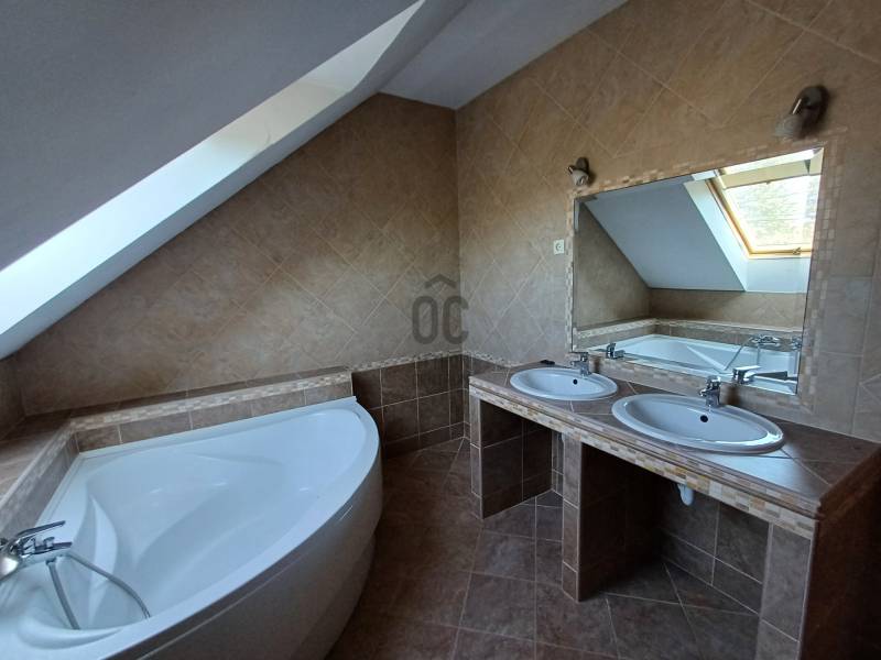 Fedezze fel új otthonát Nagykőrös szívében - tágas, kényelmes és megfizethető!Nagykőrös városban a település délnyugati részén kertvárosias, jellemzően lakóházas beépítésű környéken kétlakásos ikerház akár lakásonként eladó.A telken egy 2010 környékén épült pince + földszint + tetőtér szintosztású ikerház áll. Beton sávalapon, tégla felmenő falazattal, vasbeton födémmel, faszerkezetű magastetővel, cserép héjazással. Homlokzata nemesvakolt. A 2 lakás külön – külön fűtéssel és melegvízellátással rendelkezik, melyeket gázkazánok biztosítanak. Hőleadás padlófűtés és radiátorok. Homlokzati nyílászárók műanyag szerkezetűek, hőszigetelő üvegezéssel ellátva, míg belső nyílászárói fa szerkezetűek. Helyiségek burkolatai a szobákban laminált parketta, többi helyiségben járólap. Falak festettek, vizes helységekben csempézettek.A lakások területe egyenként: 179 m2 + terasz:20,70 m2,Alsó szint: (teremgarázs) gépkocsi tároló , kamra, mosókonyha : hasznos terület: 80,78 m2,Földszint: előszoba, nappali, konyha, fürdőszoba : hasznos alapterület 59 m2 + terasz: 20,70 m2,Tetőtér: 3 szoba, fürdőszoba,WC, közlekedő, hasznos alapterülete: 39,21 m2.Megnevezés a tulajdoni lapon: Kivett 2 lakásos lakóház és udvarAz ingatlanra érvényes szabályozási terv: Lk-5, melynek előírásai:.•oldalhatáron álló beépítési mód•beépítettség legnagyobb mértéke: 35%•maximális építménymagasság: 4,5mTelek területe 879nmA kétlakásos lakóépület összes alapterülete: 357,94 m2( terasz: 41,40 m2)A kétlakásos lakóépület vételára: 90 Millió FtA lakások külön vételára: 45 Millió Ft